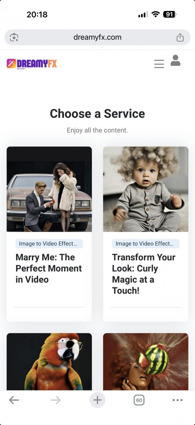 DreamyFx offers a wide variety of effects, from fun animations to advanced artistic transformations.
